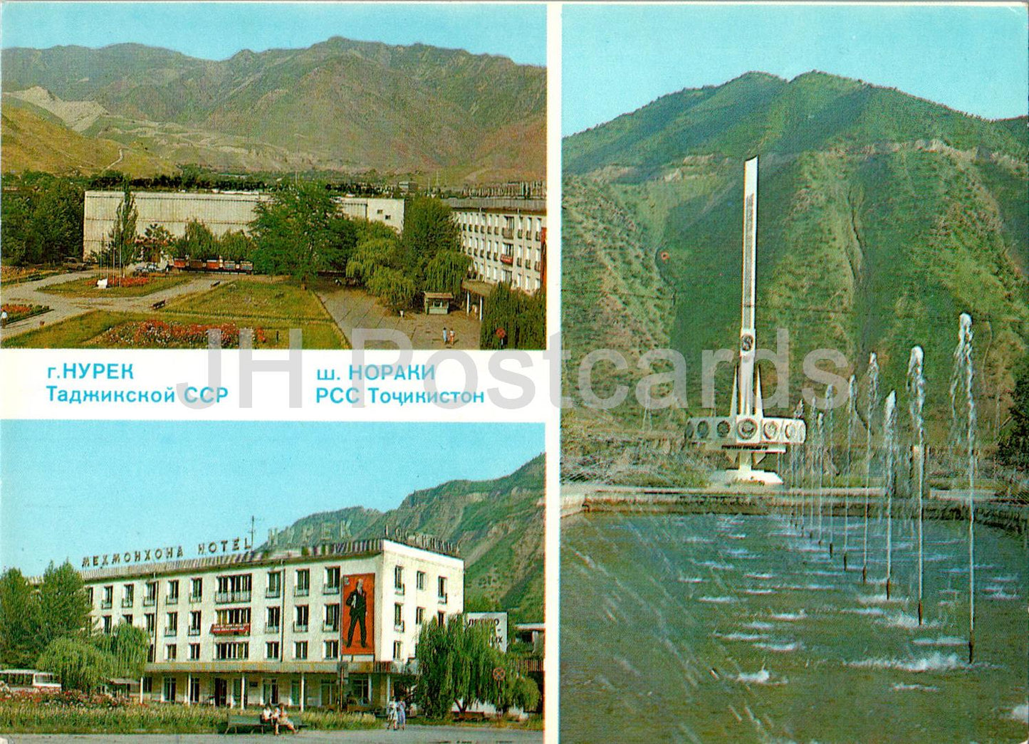 Nurek - Lenin street - hotel Nurek - Friendship fountain multiview - postal stationery - 1984 - Tajikistan USSR - unused