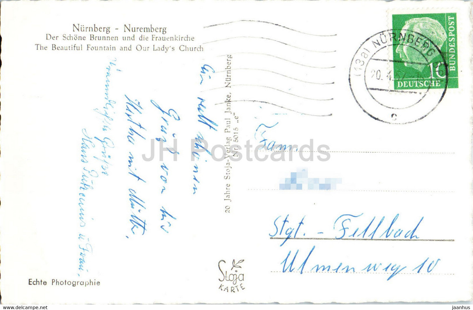 Nurnberg - Nuremberg - Der Schone Brunnen und die Frauenkirche - church - old postcard - 1957 - Germany - used