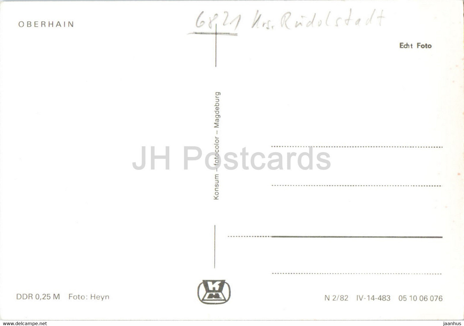 Oberhain - Rudolstadt - Germany DDR - unused