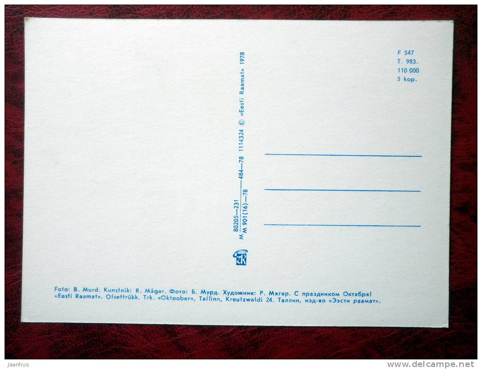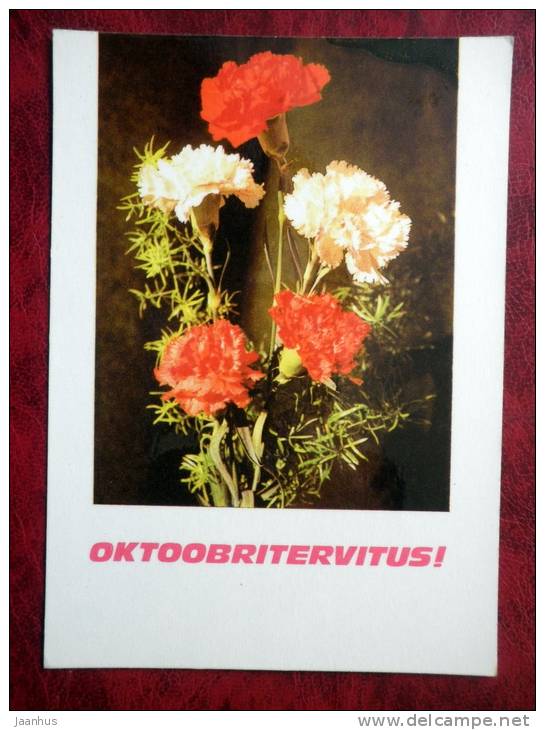October celebration greetings - flowers - carnations - 1978 - Estonia - USSR - unused