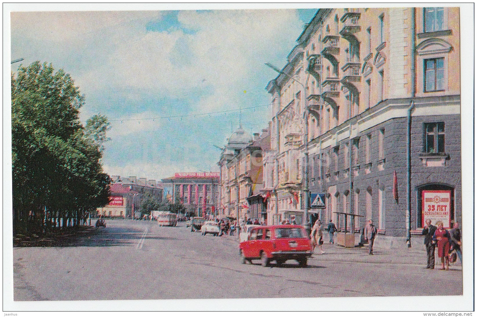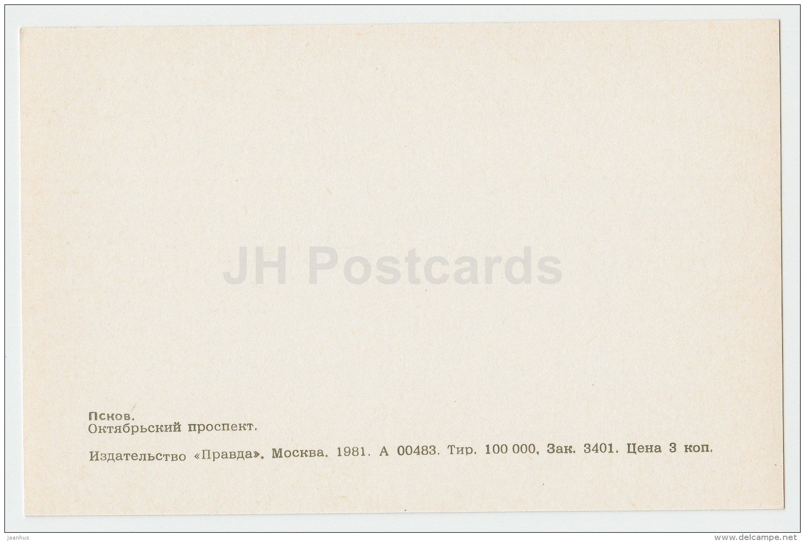 October prospekt - avenue - car Zhiguli - Pskov - 1981 - Russia USSR - unused
