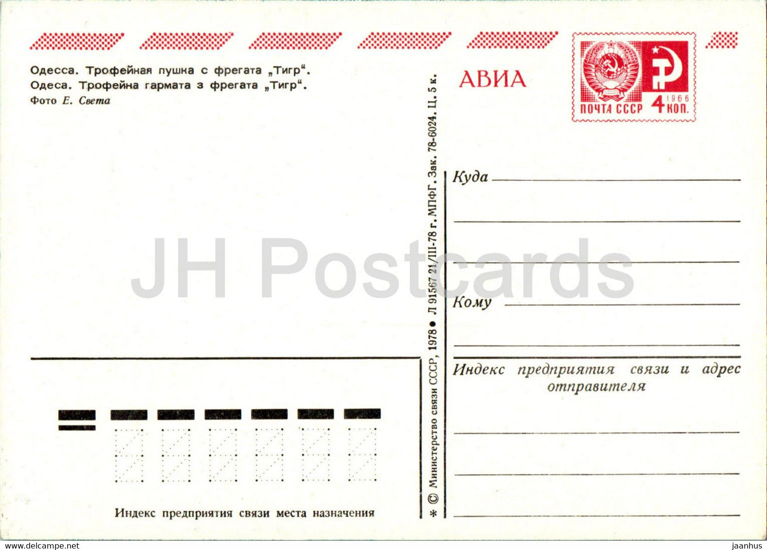 Odessa - captured cannon from the frigate Tiger - military - postal stationery - 1978 - Ukraine USSR - unused