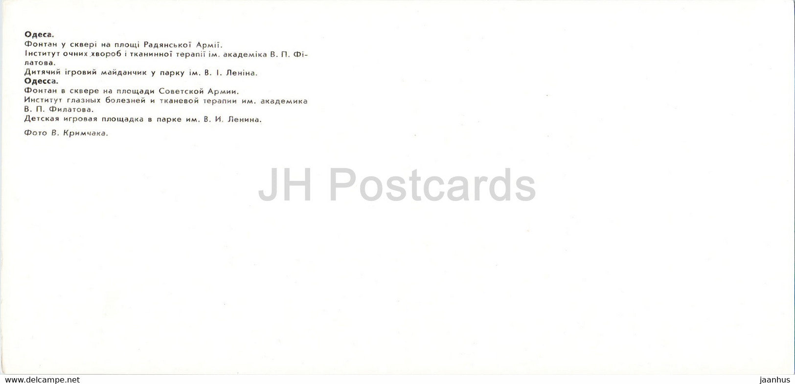 Odessa - fountain - Institute of Eye Diseases and Tissue Therapy - children playground - 1982 - Ukraine USSR - unused