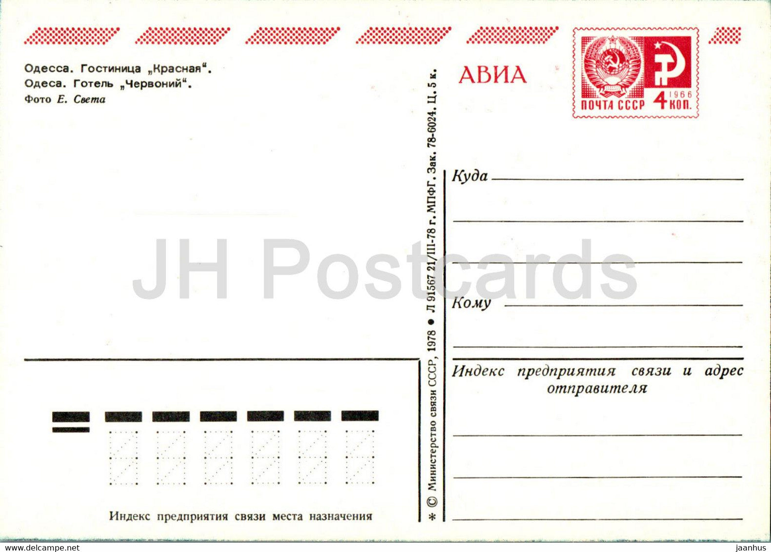 Odessa - hotel Krasnaya (Red) - postal stationery - 1978 - Ukraine USSR - unused