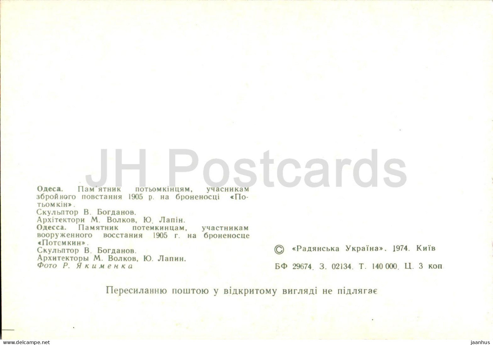 Odessa - Odesa - monument to Potemkin soldiers participants in the armed uprising 1905 - 1974 - Ukraine USSR - unused