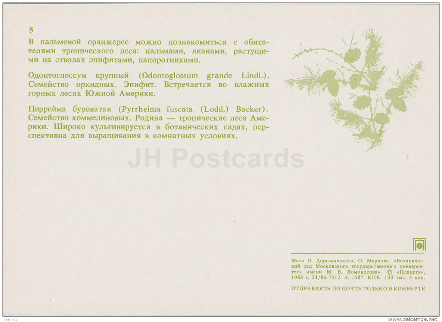 Odontoglossum grande , orchid - Pyrrheima fuscata - Moscow Botanical Garden - 1988 - Russia USSR - unused