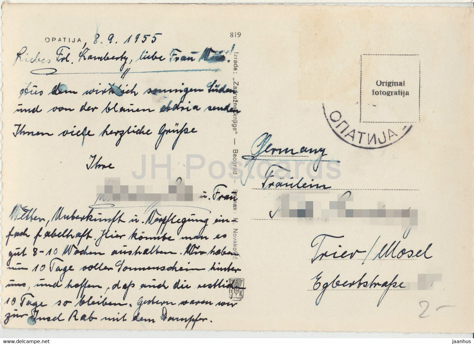 Opatija - sea view - old postcard - 1955 - Yugoslavia - Croatia - used
