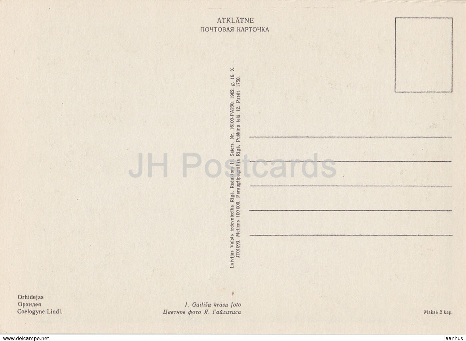 Orchid - Coelogyne - flowers - plants - 1962 - Latvia USSR - unused