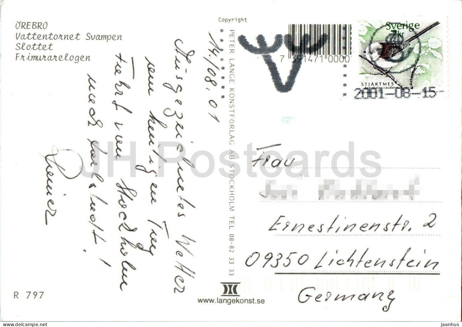 Orebro - Vattentornet Svampen - Slottet - Freemasons' Lodge - castle - water tower - 797 - 2001 - Sweden - used