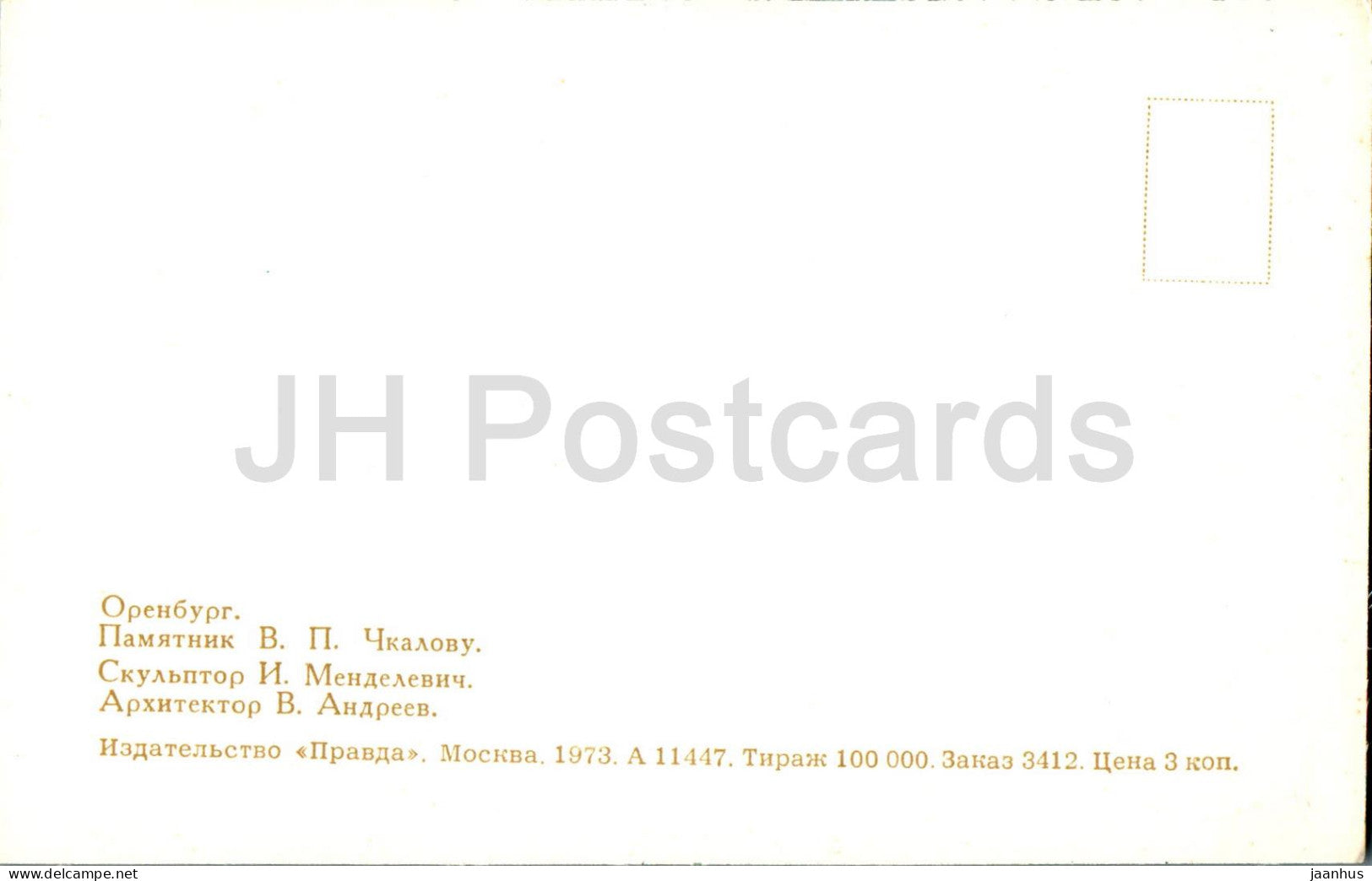 Orenburg - monument to Russian pilot V. Chkalov - 1973 - Russia USSR - unused