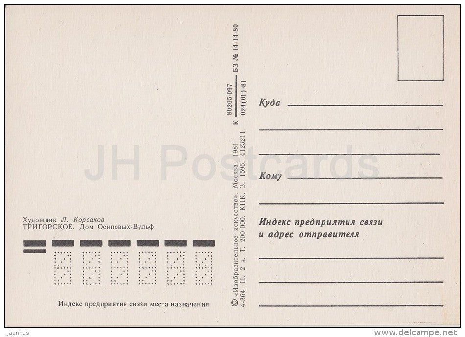 Osipov-Vulf´s House - Trigorskoye - Mikhaylovskoye - illustration by L. Korsakov - Russia USSR - 1981 - unused