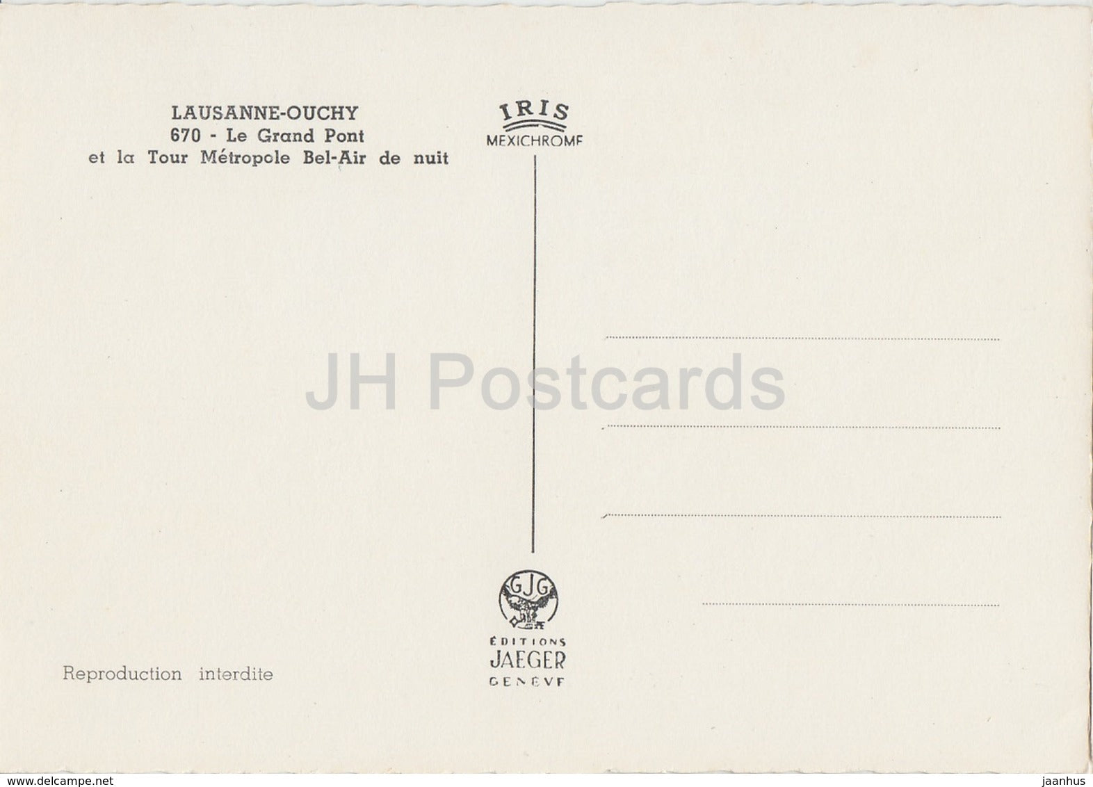 Ouchy Lausanne - Le Grand Pont et la Tour Metropole Bel-Air de nuit - 670 - Switzerland - unused