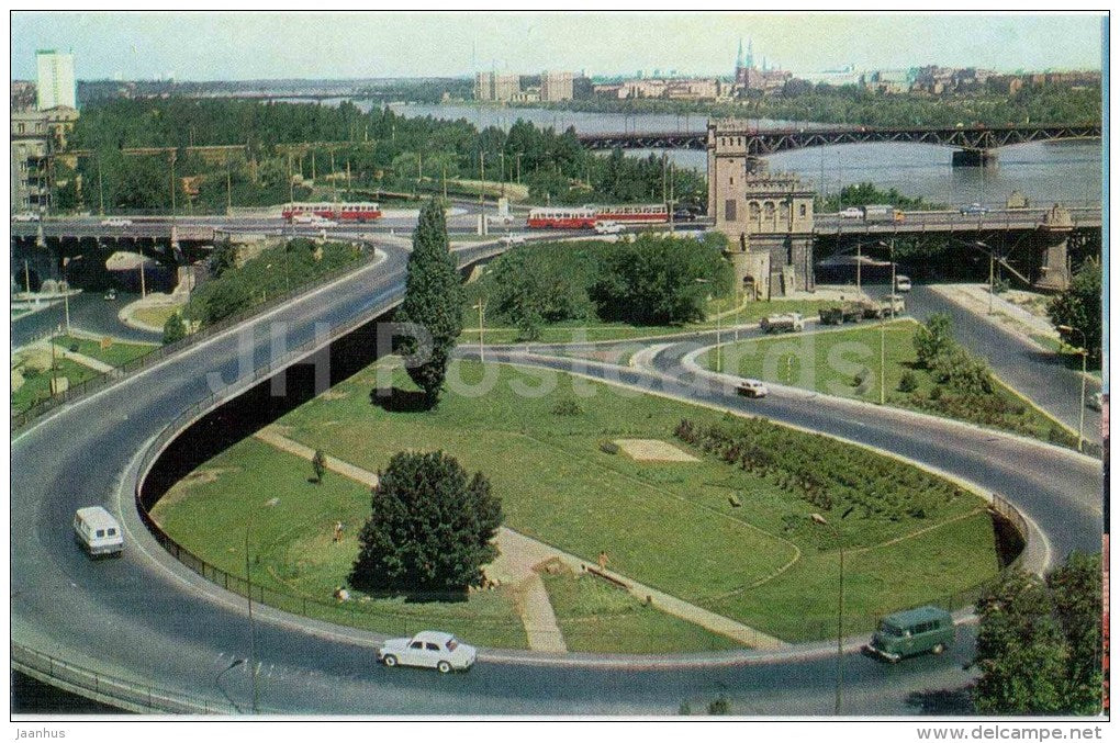 overpass on the banks of the Vistula - tram - Warsaw - Warszawa - 1972 - Poland - unused