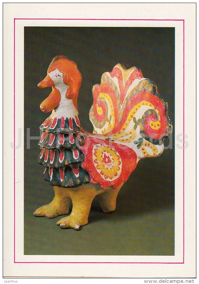 Painted Turkey-Cock of Fired Clay by Z. Penkina - Russian Folk Toy - 1988 - Russia USSR - unused