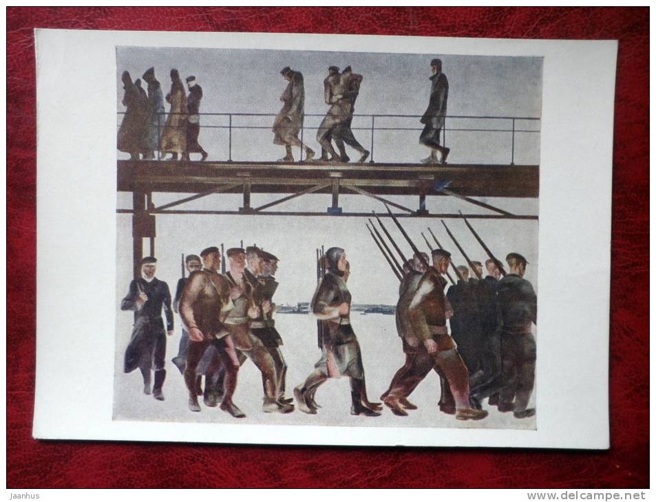 Painting by A. A. Deyneka - The Defense of Petrograd. 1928 - soldiers - russian art - unused
