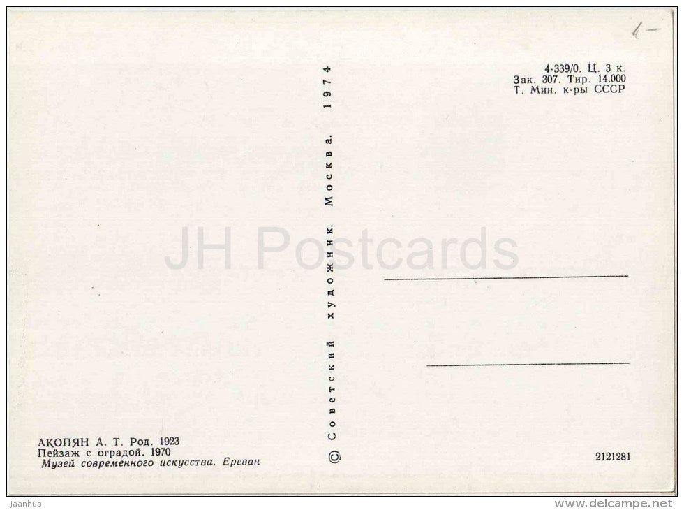 painting by A. Akopyan - Landscape with fence , 1970 - armenian art - unused