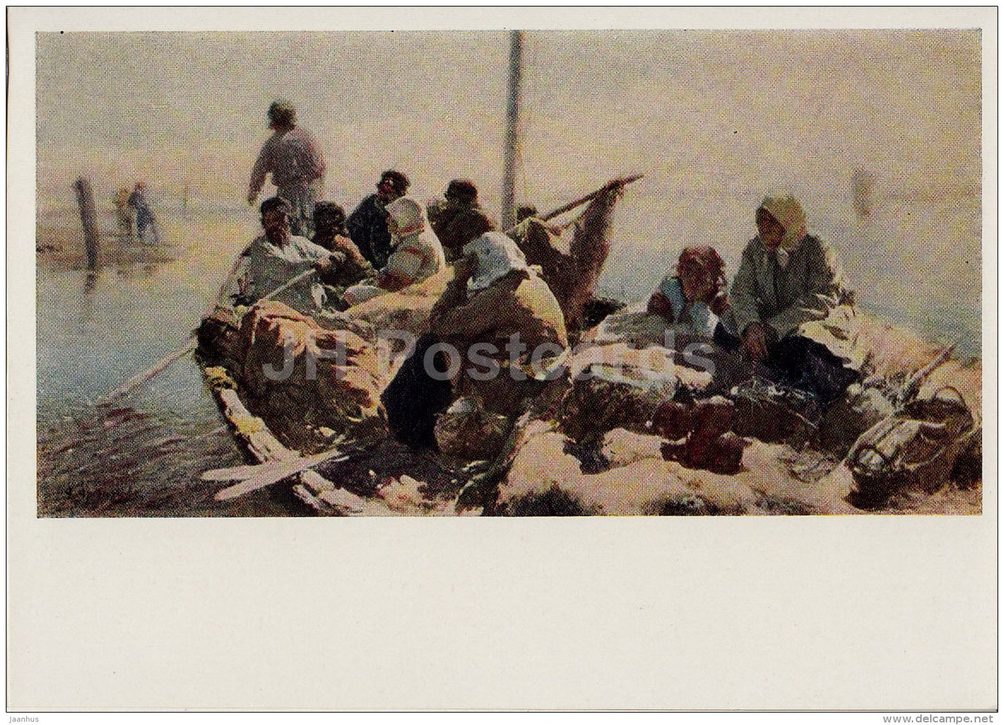 Painting by. A. Arkhipov - Along the Oka river , 1890 - boat - Russian art - 1965 - Russia USSR - unused