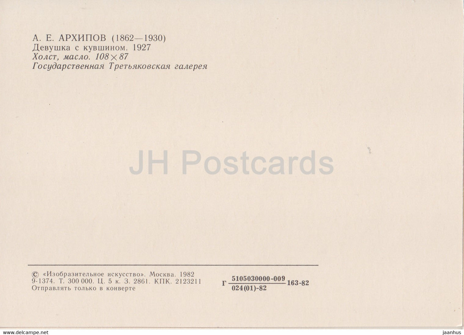 painting by A. Arkhipov - Girl with a Jug - Russian art - 1982 - Russia USSR - unused