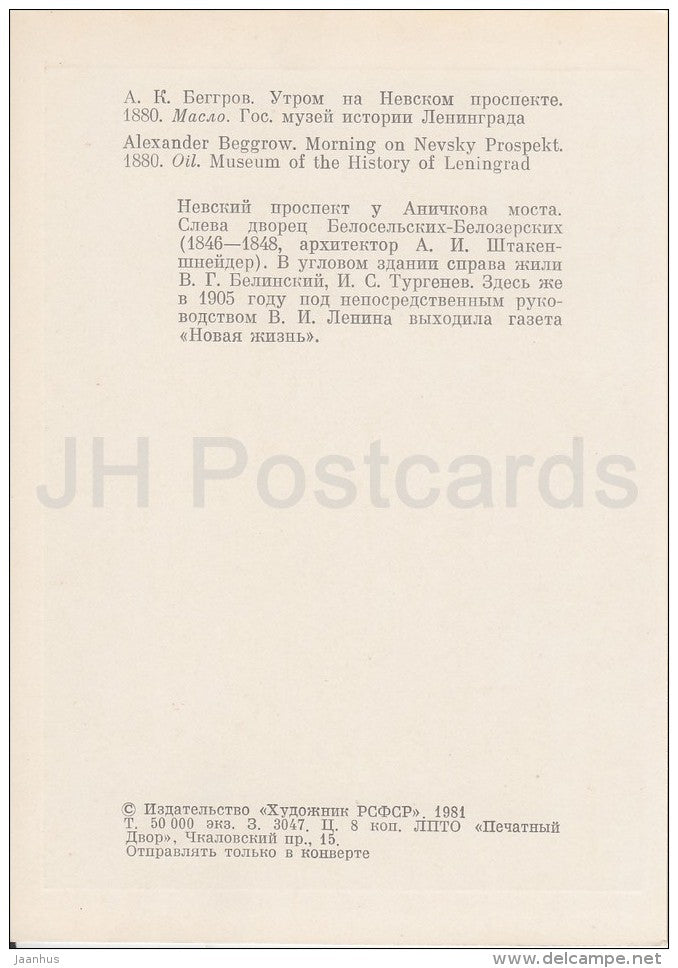 painting by A. Beggrov - Morning on Nevski Prospekt , 1880 - Russian art - Russia USSR - 1981 - unused