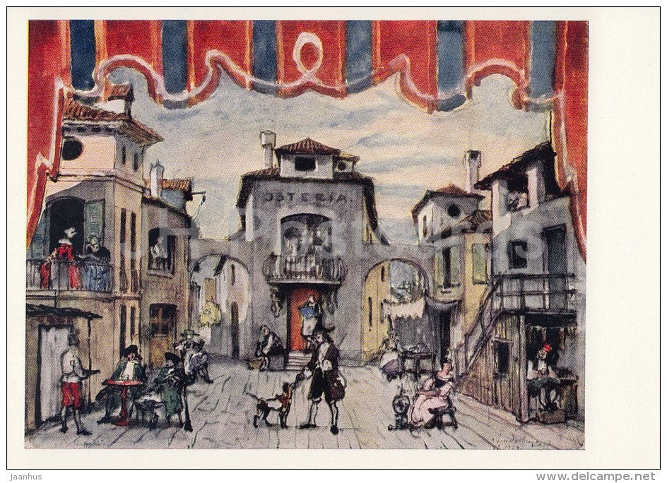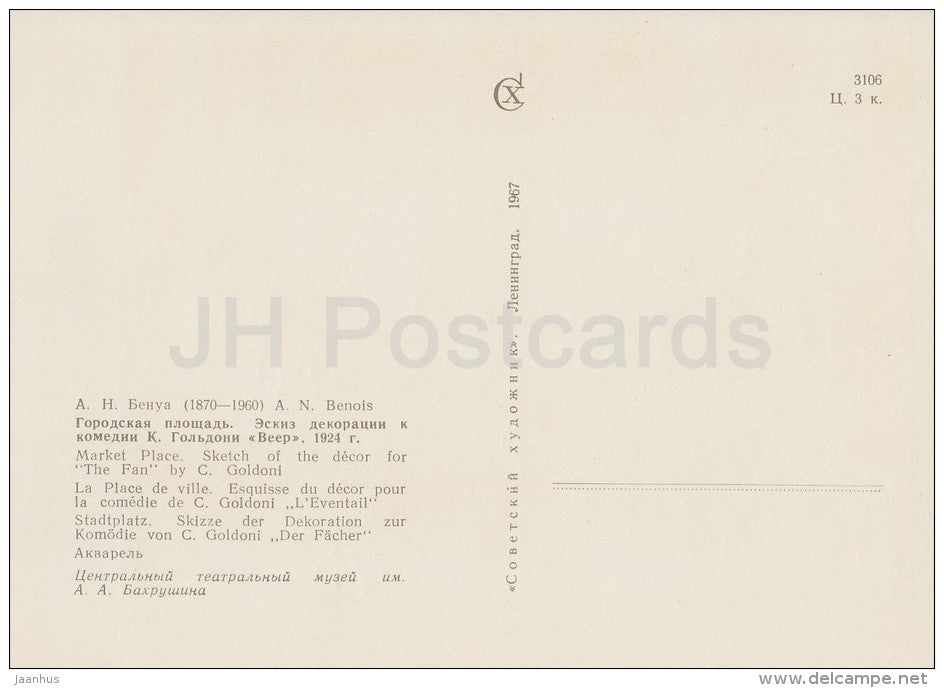 painting by A. Benois - Market Place . Sketch of decor for The Fan , 1924 - Russian art - 1967 - Russia USSR - unused