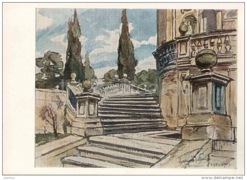 painting by A. Benois - Staircase in Sisteron . France , 1903 - russian art - unused