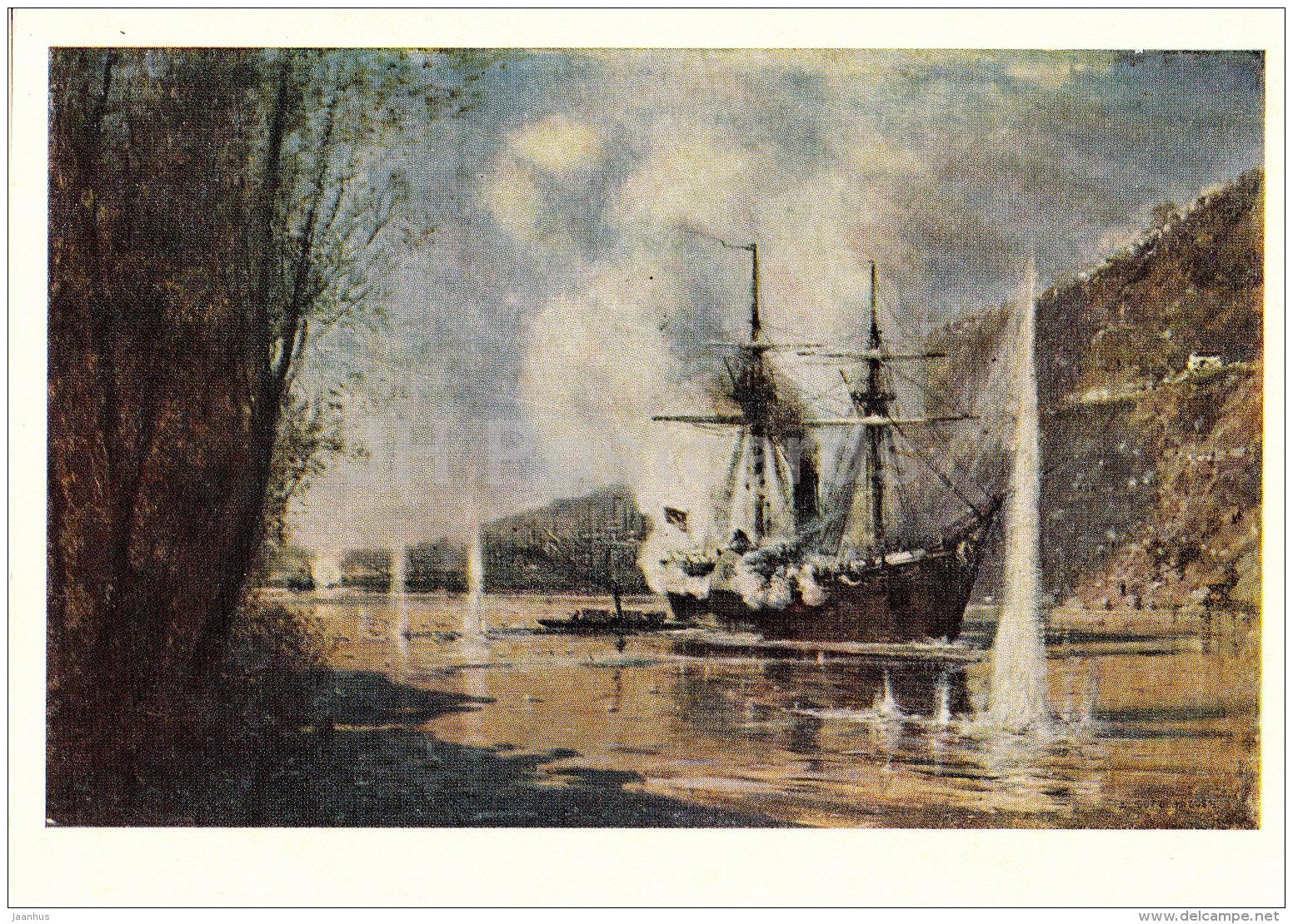 painting by A. Bogolyubov - Attack Turkish ship , 1877 - Russian Art - 1974 - Russia USSR - unused