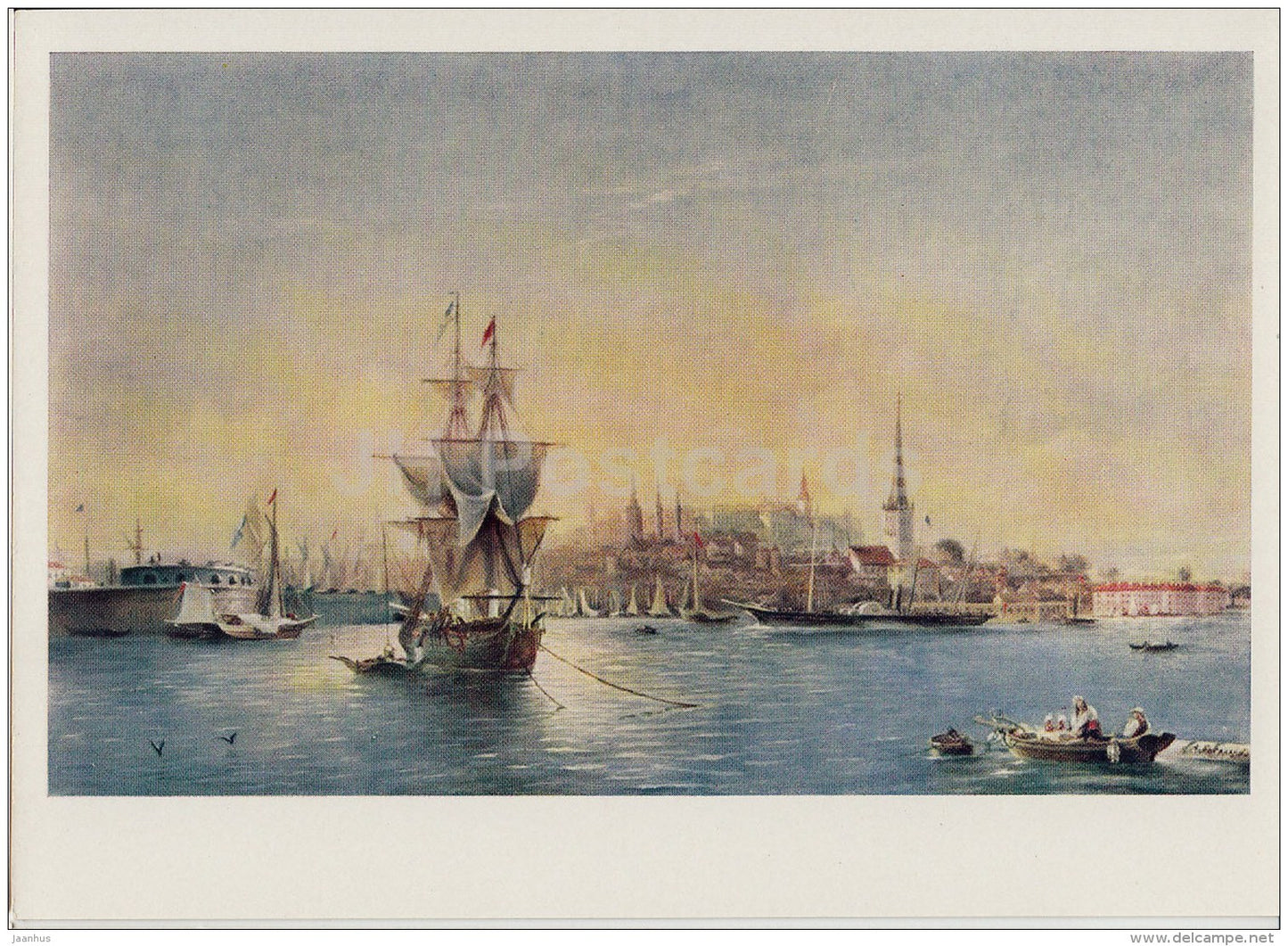 painting by A. Bogolyubov - Tallinn harbor - sailing ship - Russian art - 1966 - Russia USSR - unused