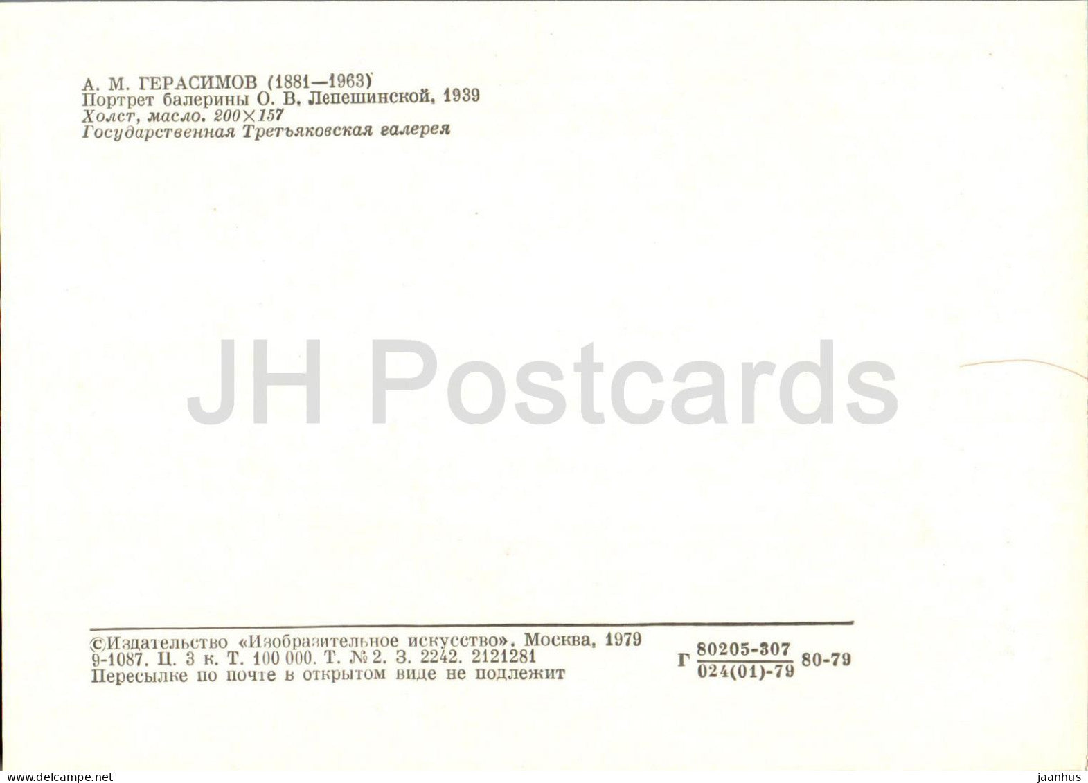 painting by A. Gerasimov - Portrait of a Ballerina Olga Lepeshinskaya - ballet Russian art - 1979 - Russia USSR - unused