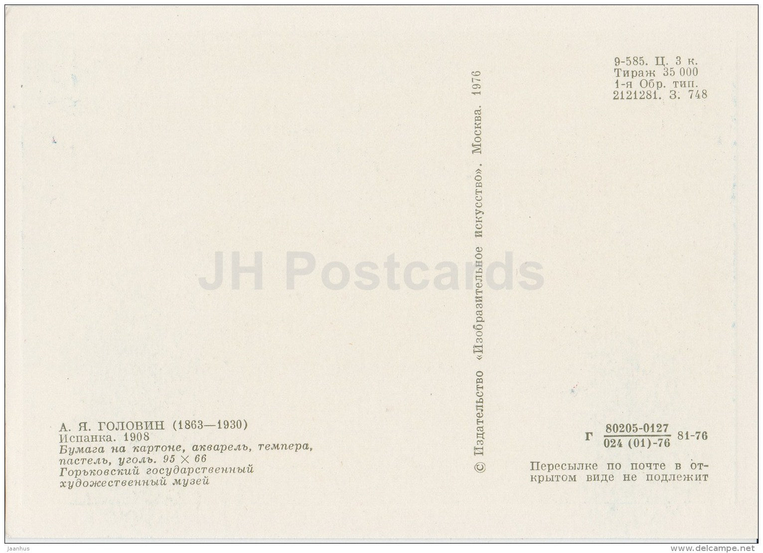 painting by A. Golovin - Spanish Woman , 1908 - Russian art - 1976 - Russia USSR - unused
