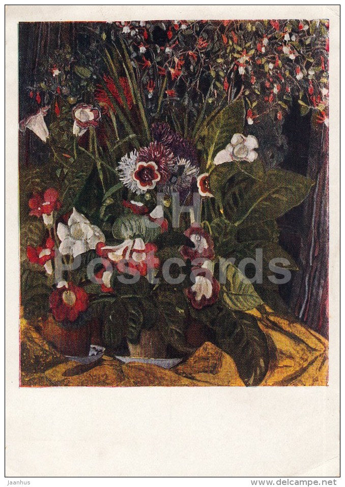 painting by A. Golovin - Still Life . Flowers - Russian Art - 1959 - Russia USSR - used