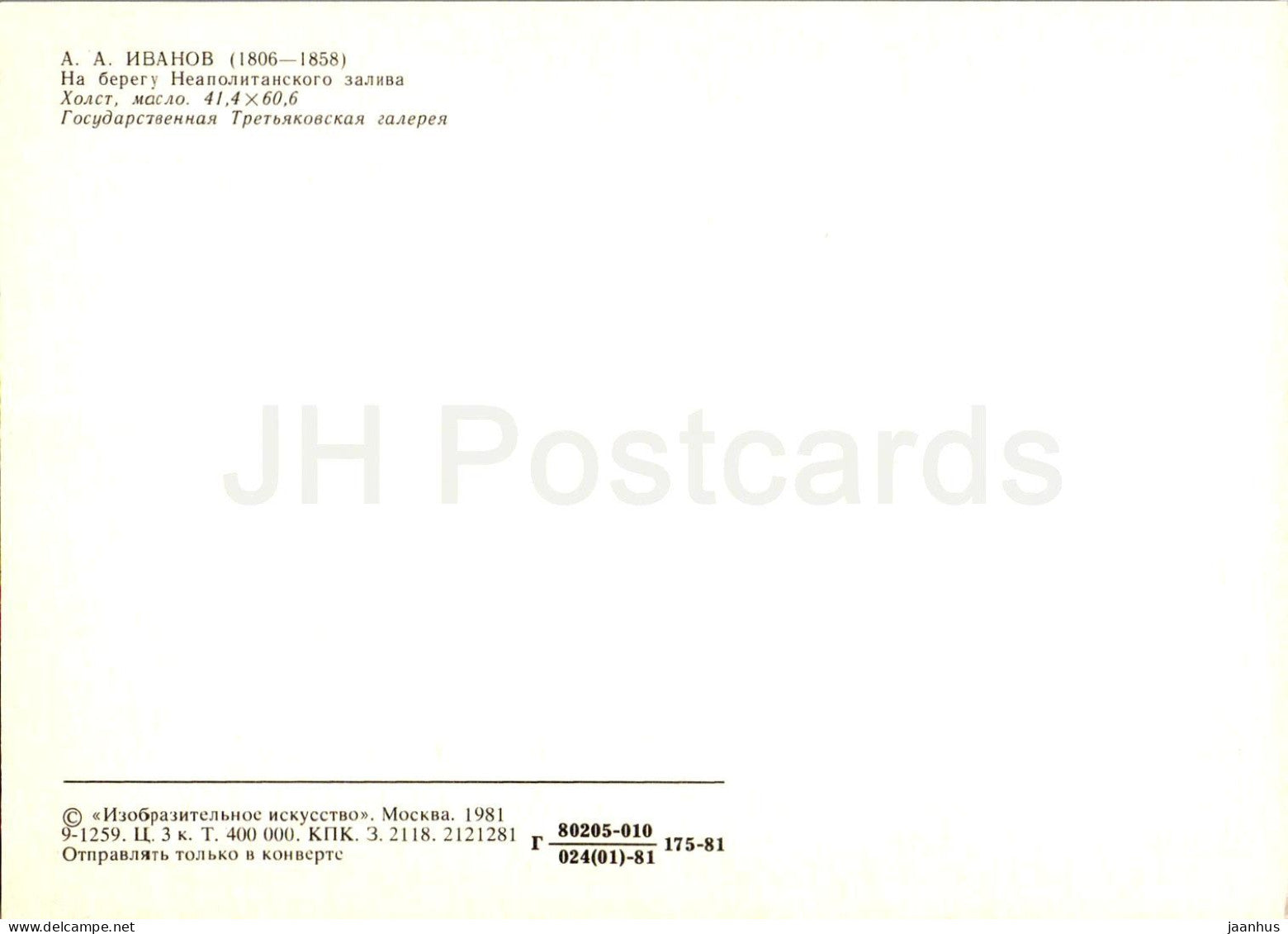 painting by A. Ivanov - On the shores of the Gulf of Naples - naked - nude - Russian art - 1981 - Russia USSR - unused
