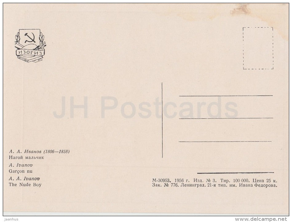 painting by A. ivanov - The Nude Boy - naked - Russian art - 1956 - Russia USSR - unused
