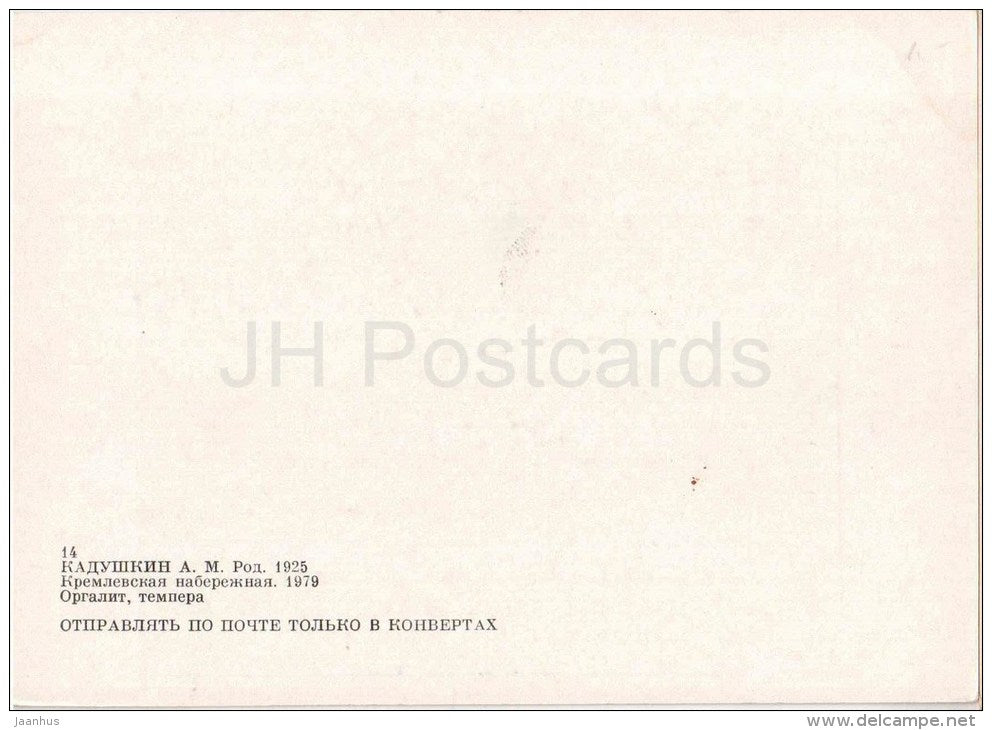 painting by A. Kadushkin - Kremlin embankment , 1979 - boat - russian art - unused