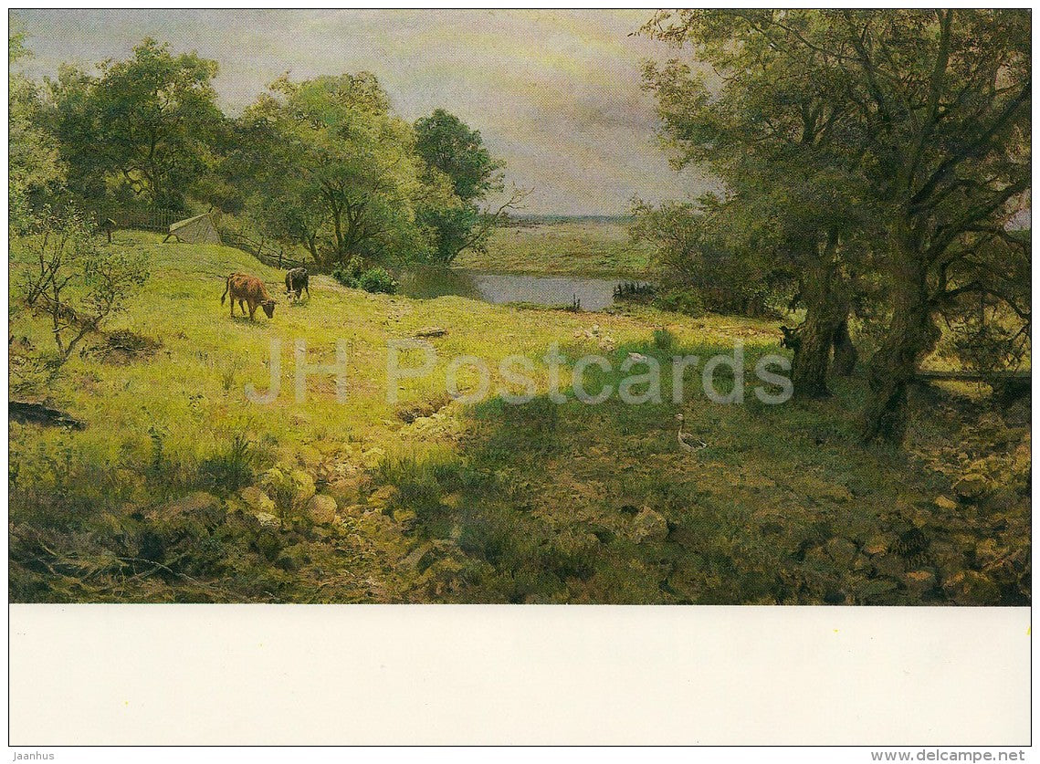 painting by A. Kiselyev - June Day . Beyond The Village - Russian art - large format card - Czechoslovakia - unused