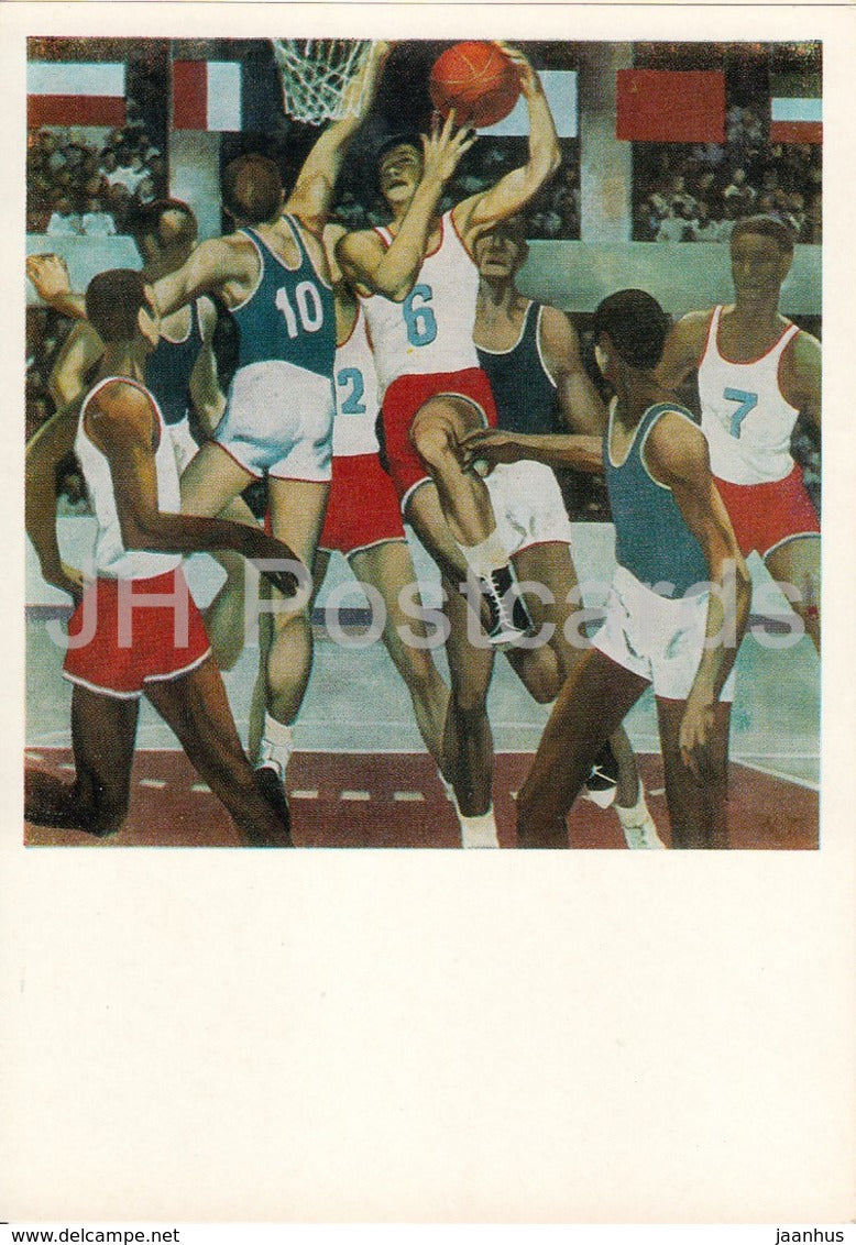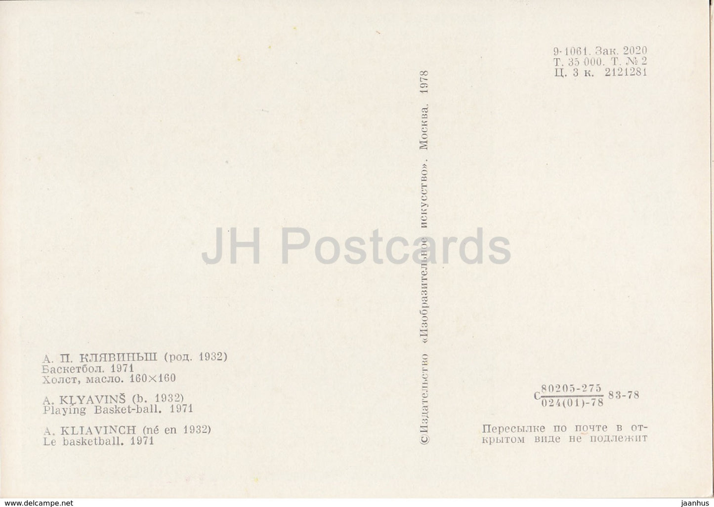 painting by A. Klyavins - Playing Basketball - Sport - Soviet art - 1978 - Russia USSR - unused