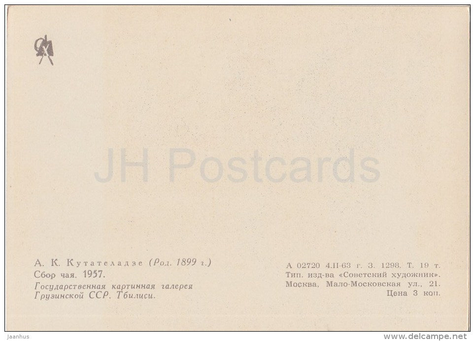 painting by A. Kutadeladze - Picking tea , 1957 - Transcaucasia - Georgian art - 1963 - Russia USSR - unused