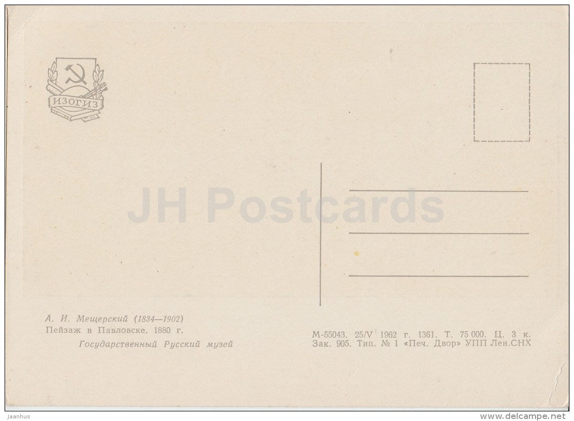Painting by A. Meshchersky - Landscape in Pavlovsk - Russian art - Russia USSR - 1962 - unused