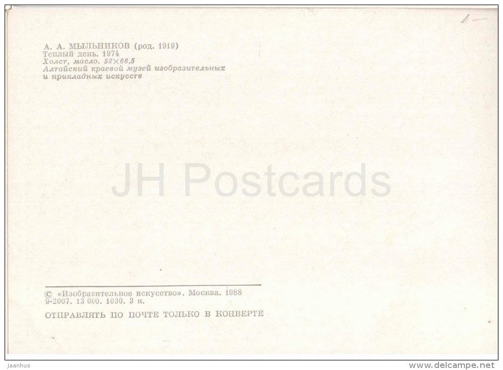 painting by A. Mylnikov - A Warm Day , 1974 - man - russian art - unused
