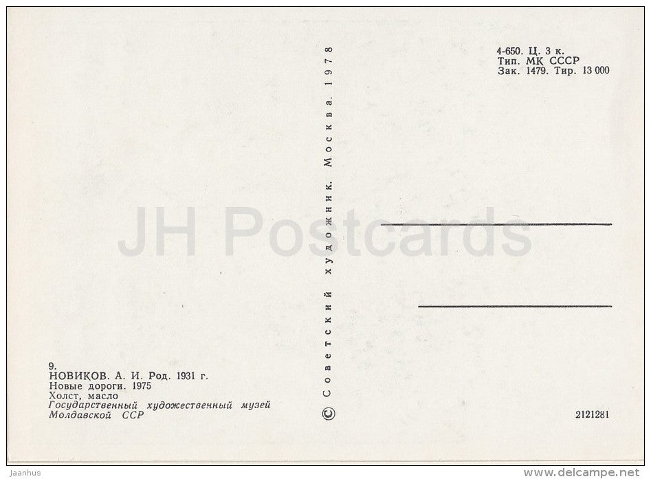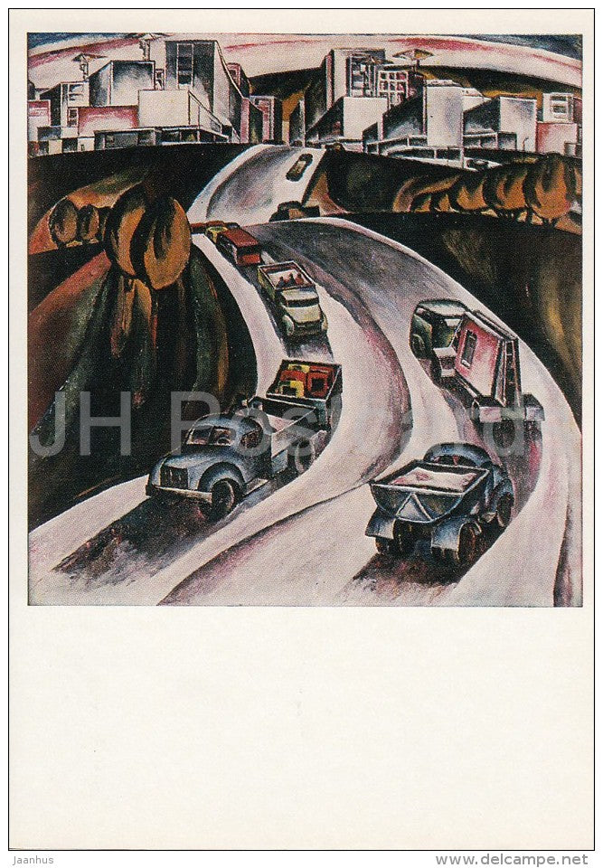 painting by A. Novikov - New Roads , 1975 - trucks - Moldavian art - Russia USSR - 1978 - unused