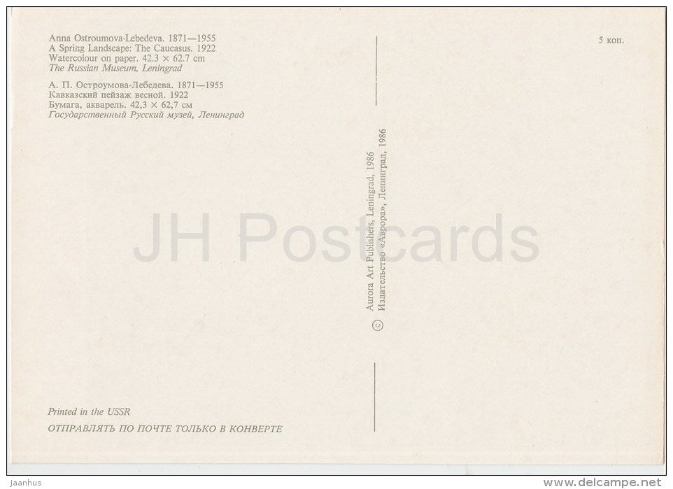 painting by A. Ostroumova-Lebedeva - A Spring Landscape: The Caucasus , 1922 - Russian art - 1986 - Russia USSR - unused
