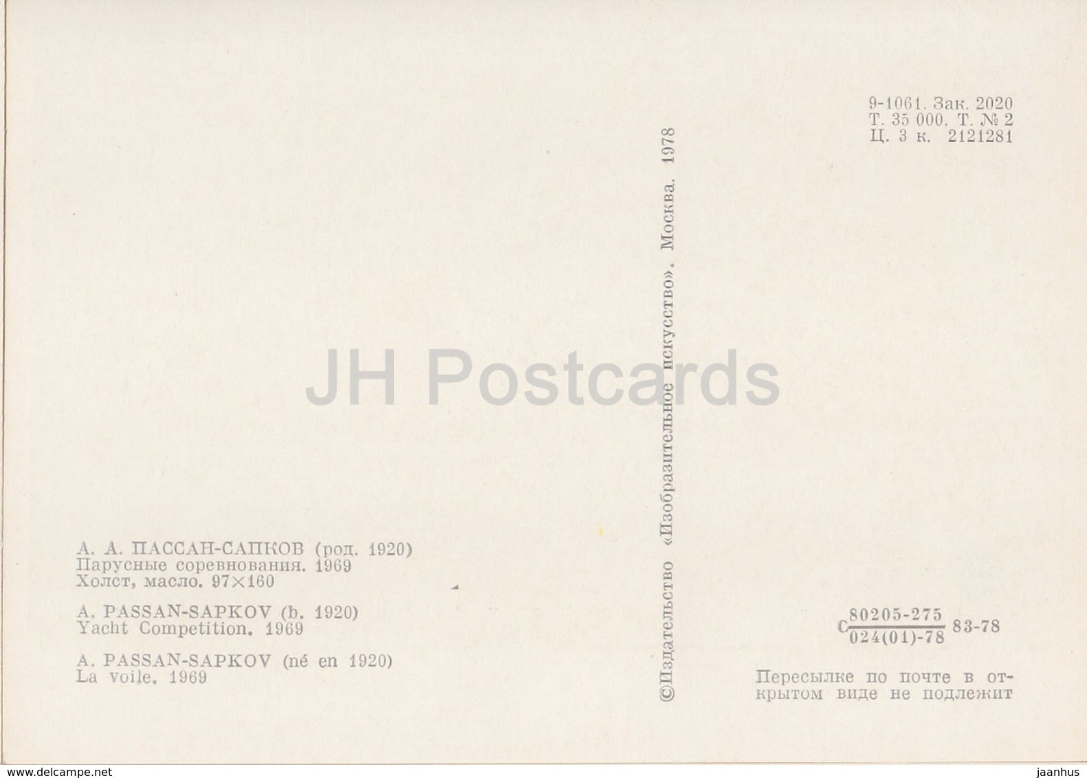 painting by A. Passan Sapkov - Yacht Competition - Sport - Soviet art - 1978 - Russia USSR - unused