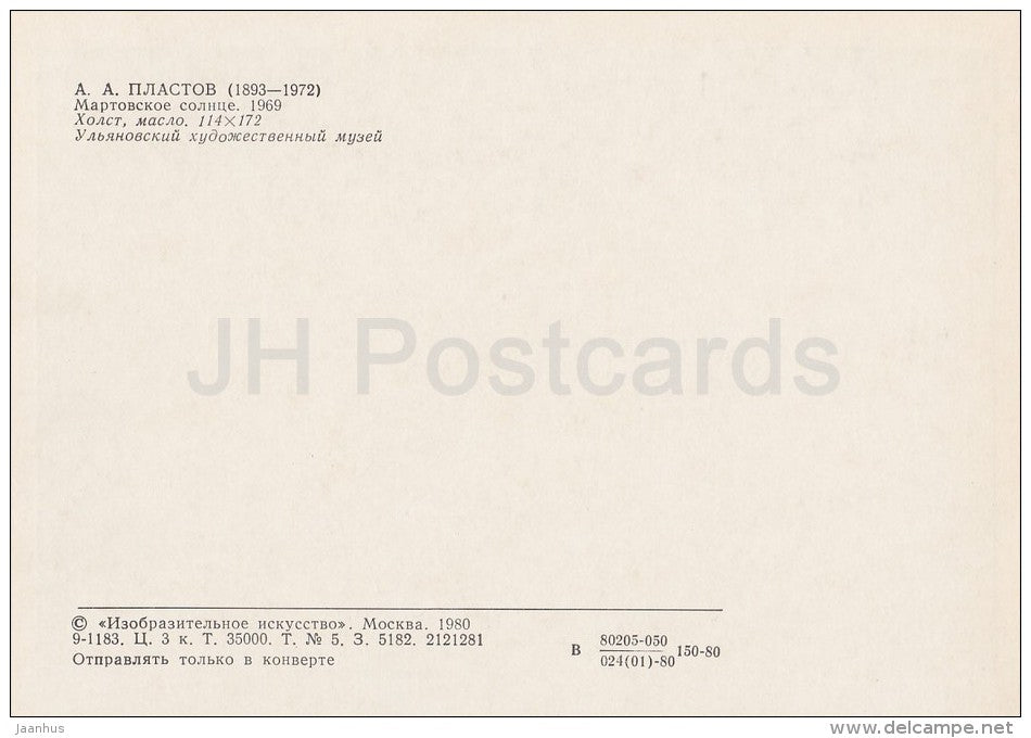 painting by A. Plastov - March Sun , 1969 - girl - chicken - goat - Russian art - 1980 - Russia USSR - unused