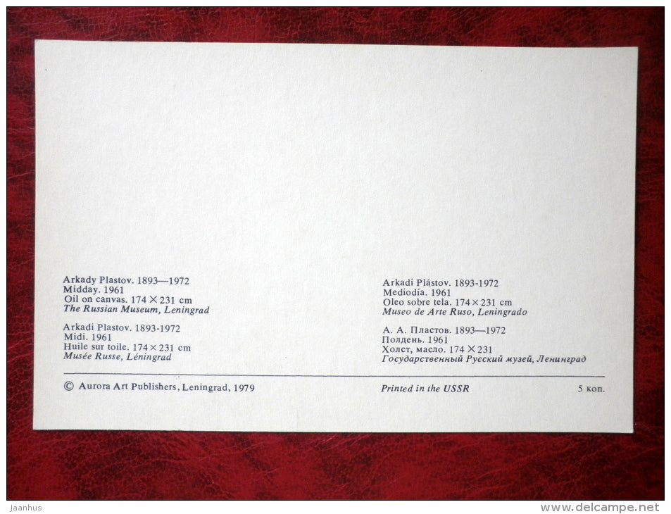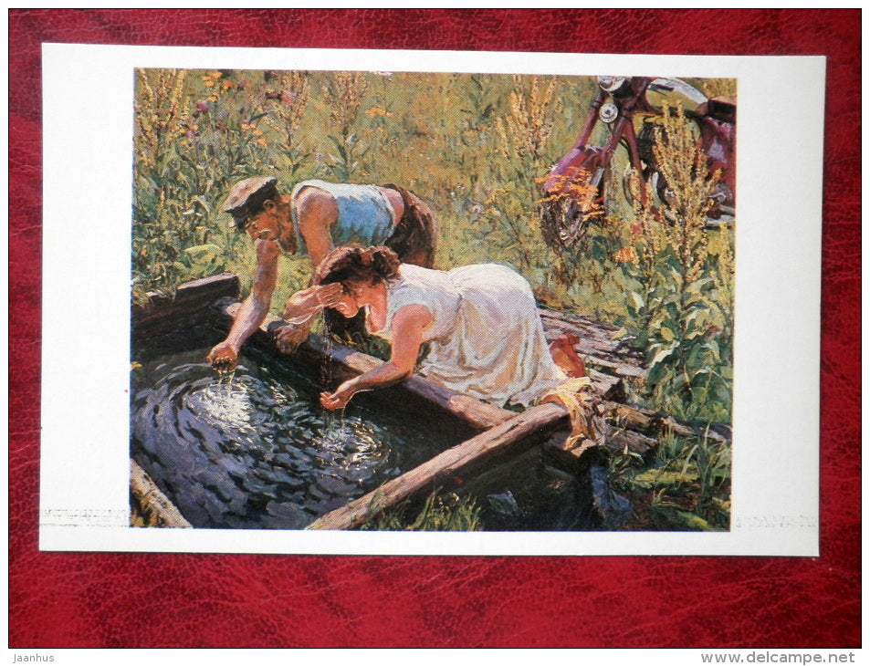 Painting by A. Plastov - Midday . 1961 - well - motorcycle - russian Art - unused