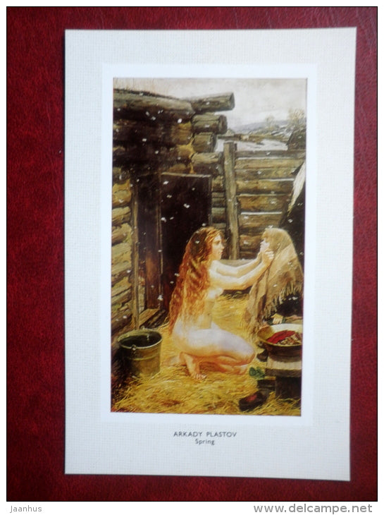 painting by A. Plastov , Spring , 1954 - sauna - naked woman - russian art - unused