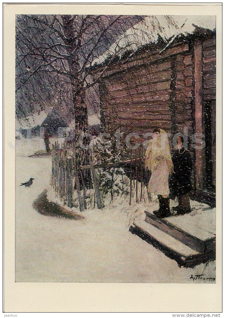 painting by A. Plastov - The Year´s First Snow , 1946 - children - russian art - Russia USSR - unused