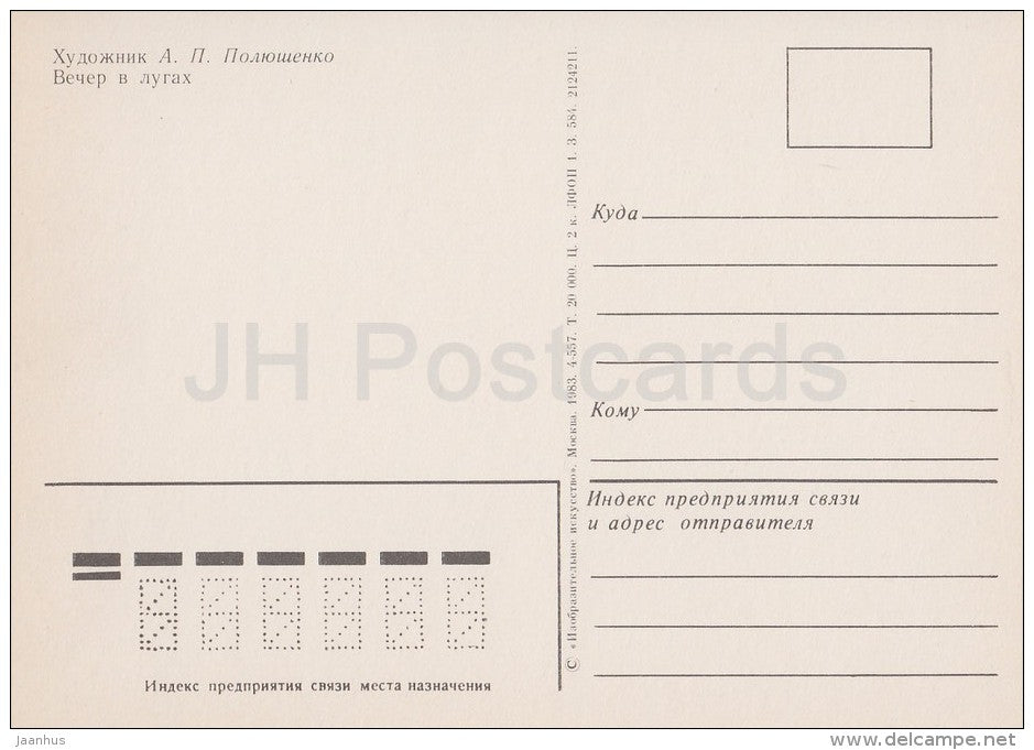 painting by A. Polyushenko - Evening in the meadows - Russian art - Russia USSR - 1983 - unused