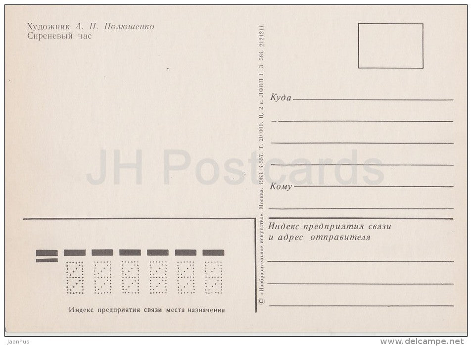 painting by A. Polyushenko - Lilac Hour - Russian art - Russia USSR - 1983 - unused