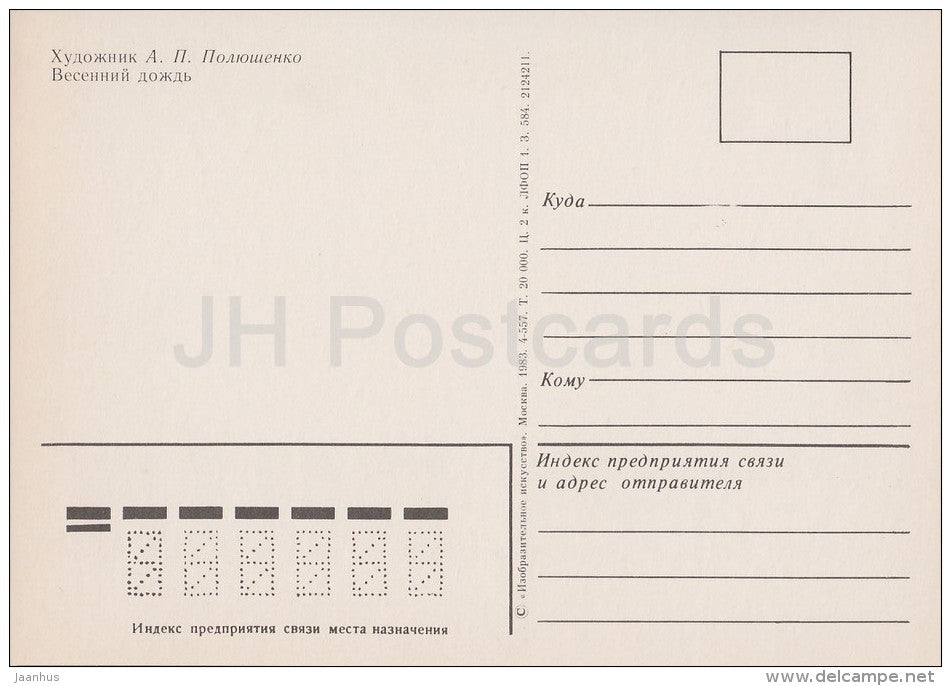 painting by A. Polyushenko - Spring Rain - Russian art - Russia USSR - 1983 - unused