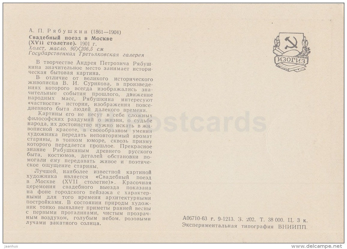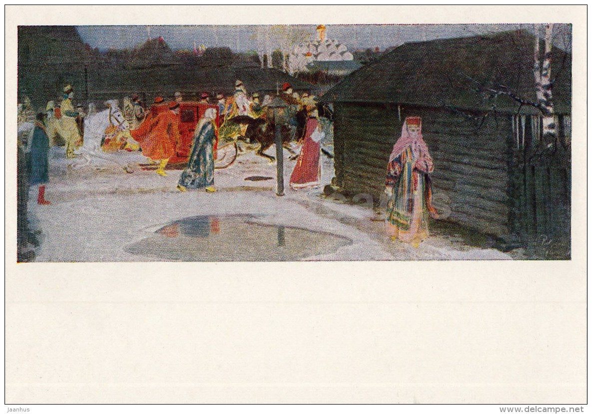 painting by A. Ryabushkin - Wedding Train in Moscow , 1901 - horse sledge - Russian Art - 1963 - Russia USSR - unused