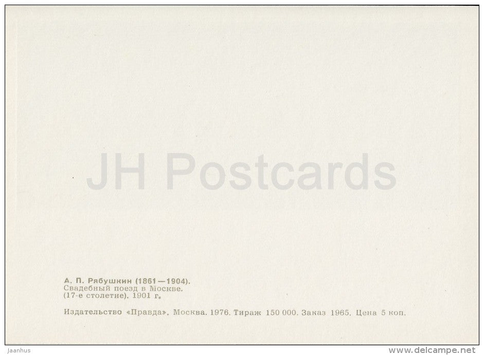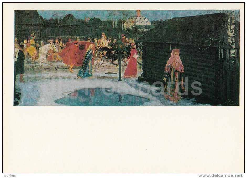 painting by A. Ryabushkin - Wedding Train in Moscow , 1901 - sledge - Russian art - 1976 - Russia USSR - unused